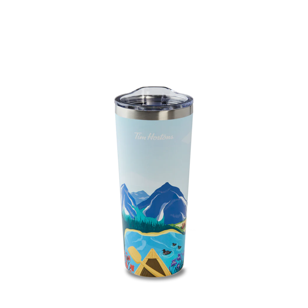 Keep your drinks cold for up to 16 hours. and hot for up to 6 hours with the limited edition Canada Travel Mug. Featuring original artwork by Canadian artist Av Wu. that celebrates the natural beauty of Canadian landscapes.