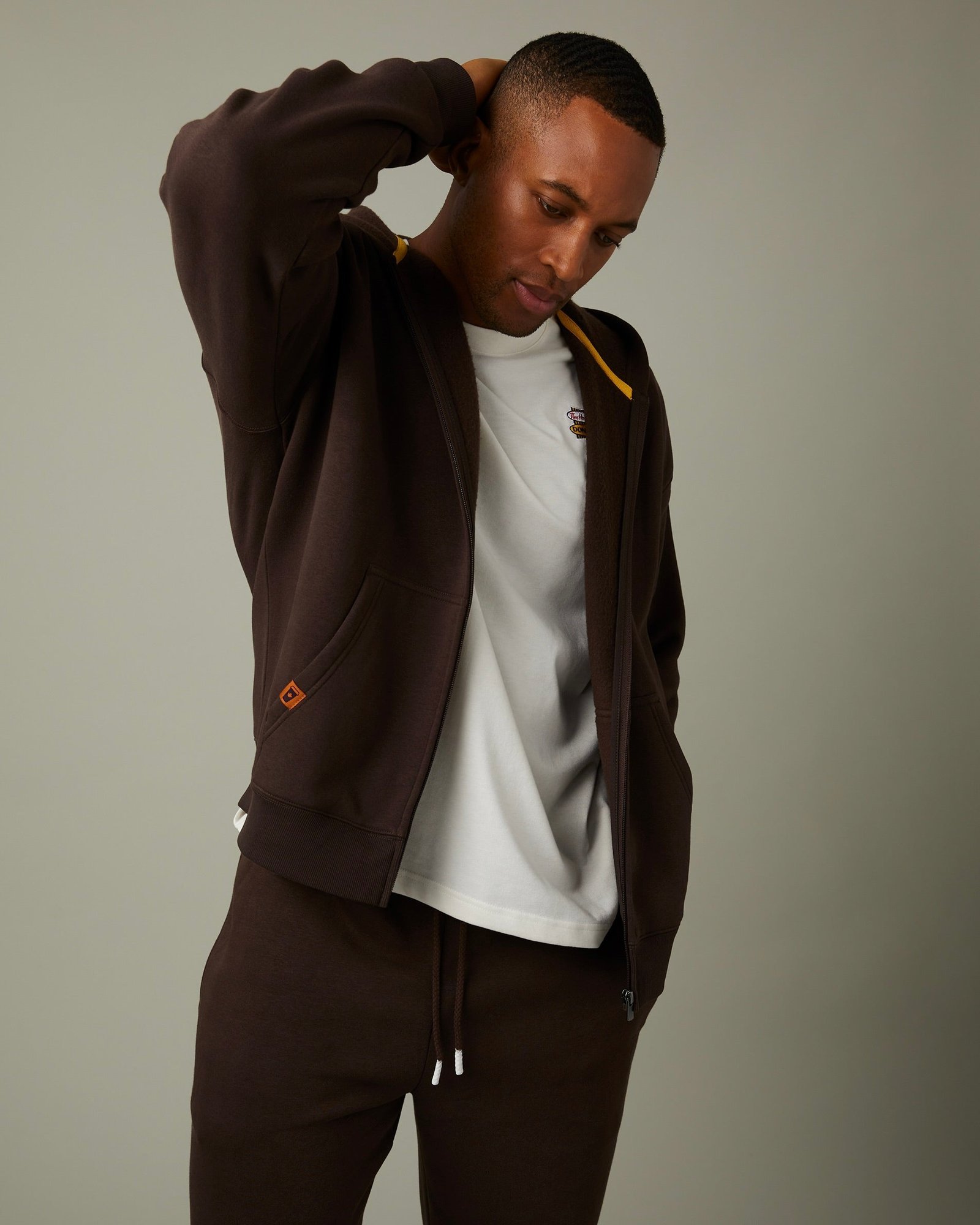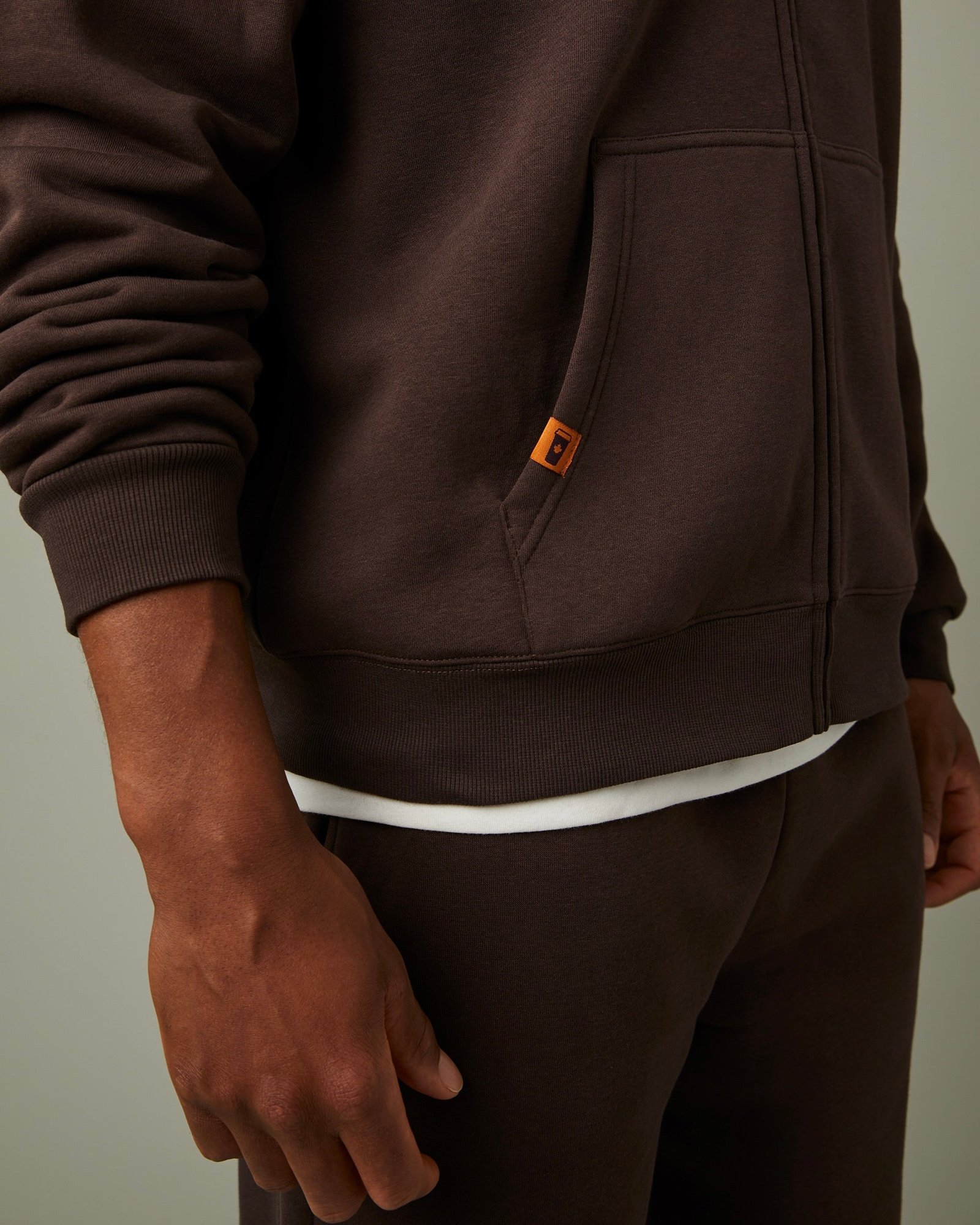 Cozy like your morning brew. This full zip comes in a rich espresso shade that pairs well with early starts and late nights. Easy to layer. easy to love.
