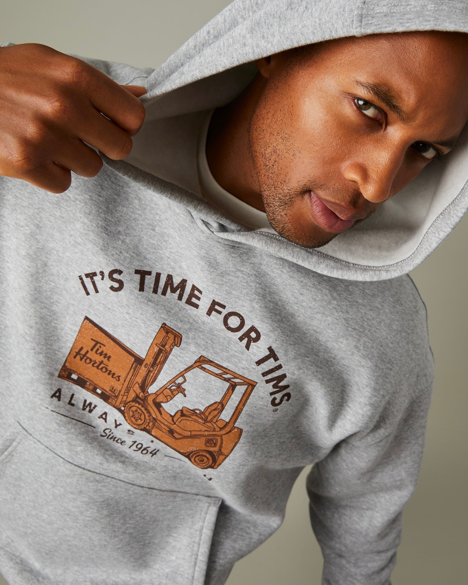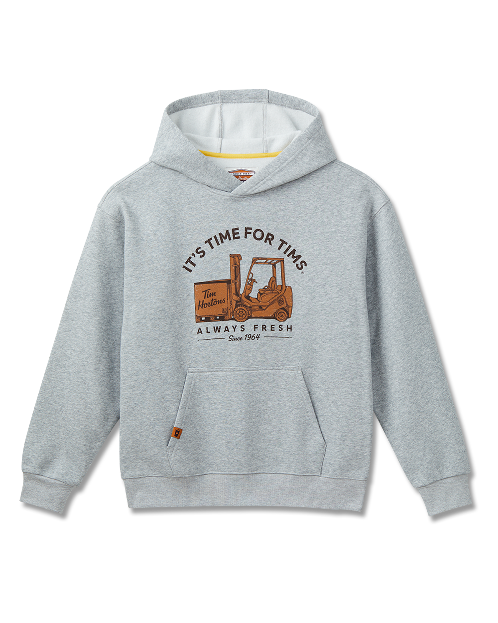 A nod to the hard work behind the scenes. and to the team that keeps Tims moving. This grey fleece hoodie is soft. incredibly comfy. and made for the daily grind.